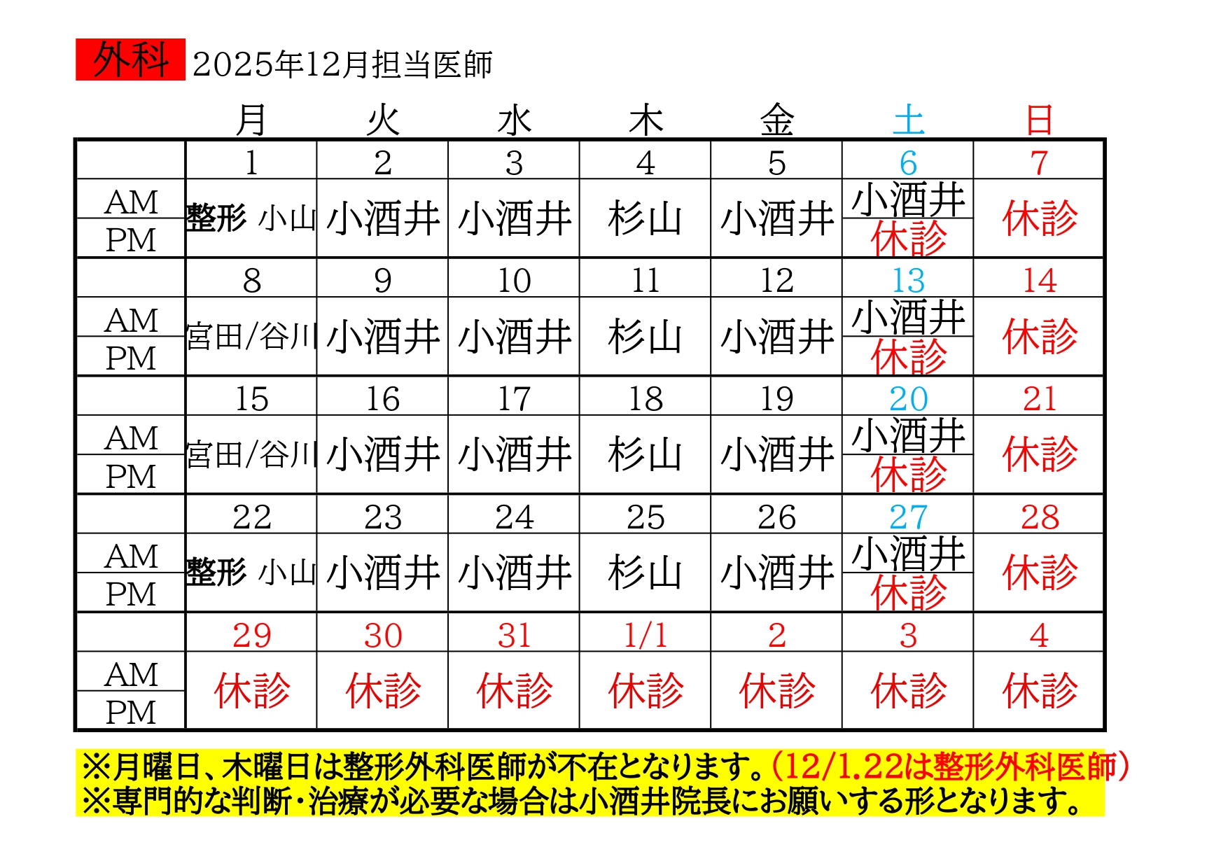 ◯リウマチ科・泌尿器科 …受診前にお電話でご確認ください