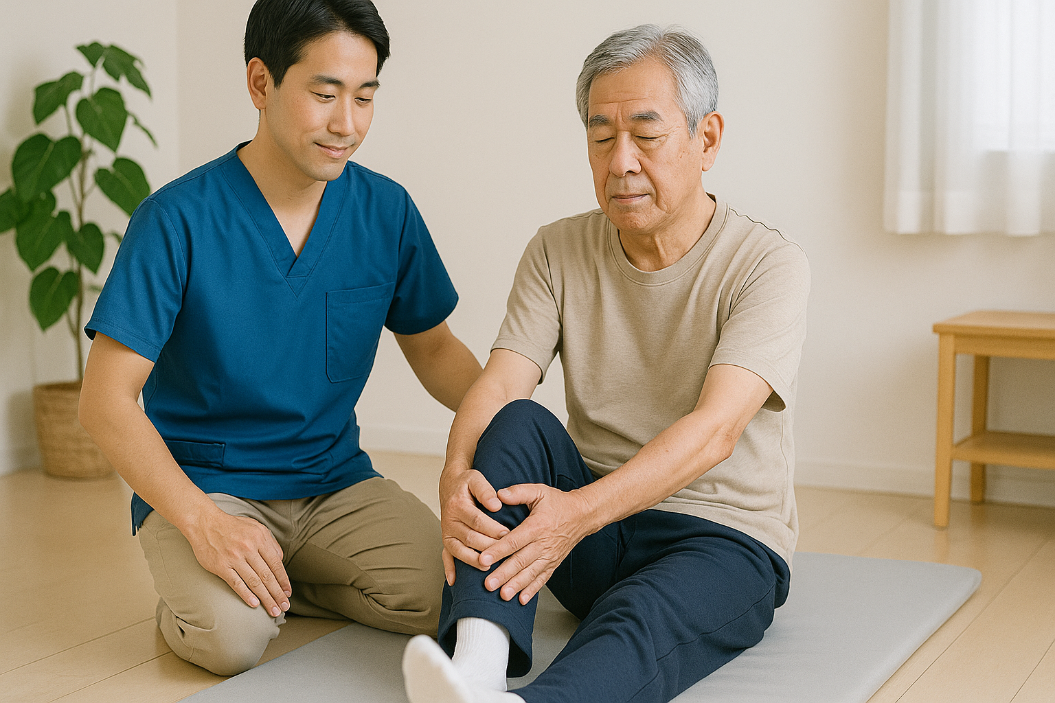 当院リハビリテーション科では、気象変化に合わせたセルフストレッチ指導や、膝装具・腰部サポーターの選定も行っています。