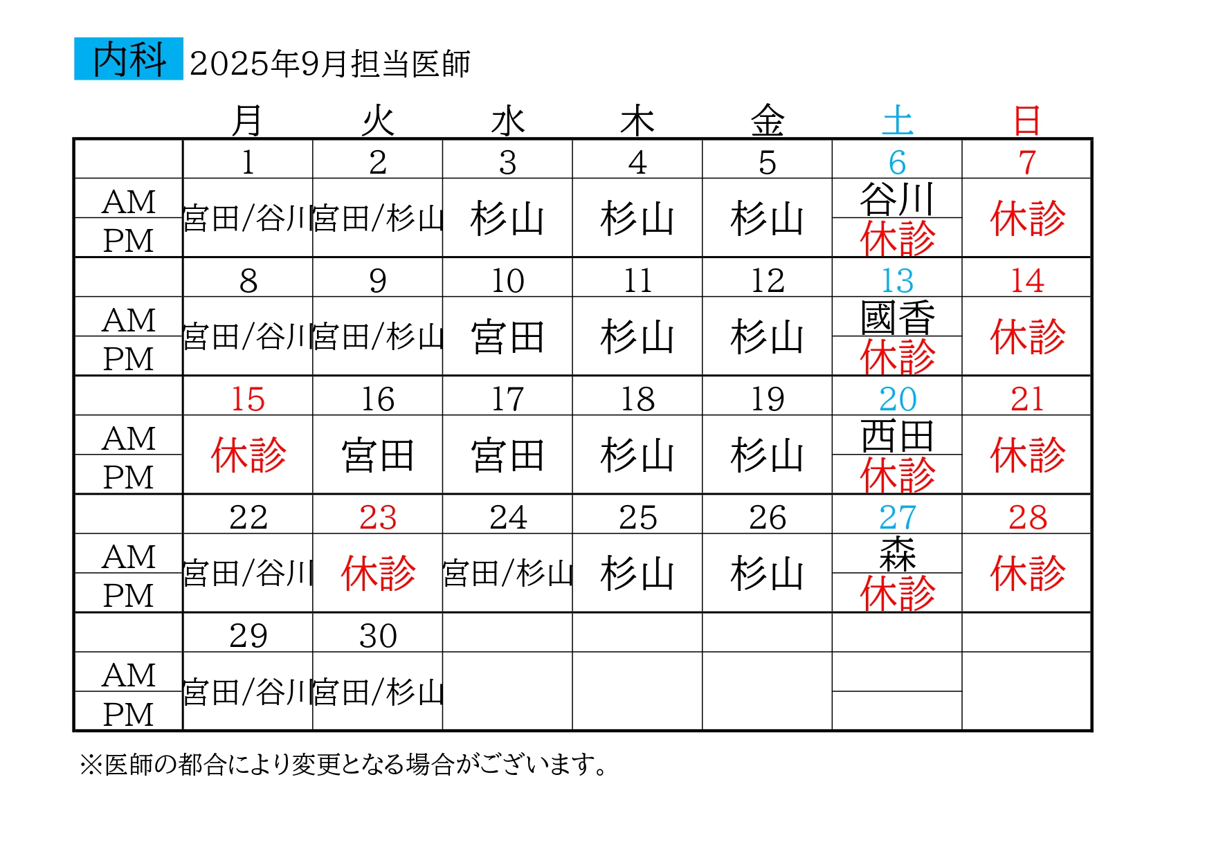 お知らせ Information HOME お知らせ 9月の担当医師カレンダーを更新致しました お知らせ 9月の担当医師カレンダーを更新致しました 2025年8月13日 【新しいページへ】 【過去のページへ】 一覧に戻る